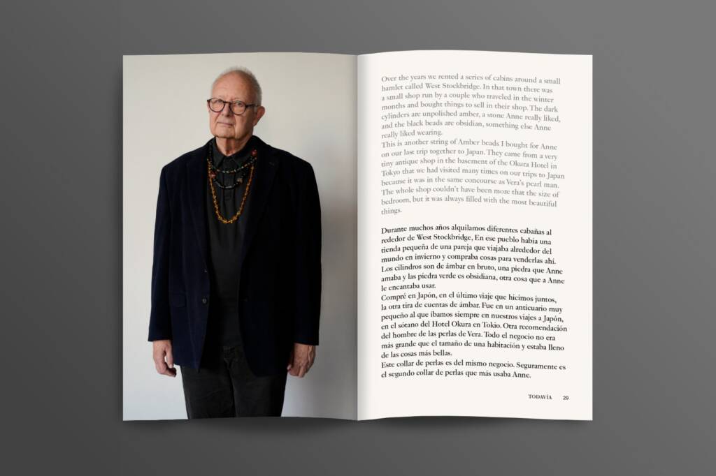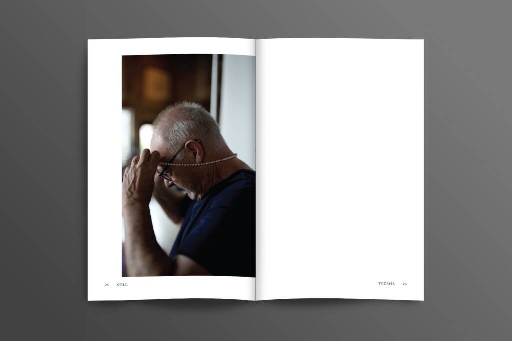 Still / Todavía ist die erste Publikation einer Buchreihe, die untersucht, wie Schmuck unser Leben verändert. Anhand der Geschichte von Anne und Donald reflektiert das Buch Schmuck als Träger von Erinnerung, Präsenz, Liebe und Verlust. Herausgegeben von Iris Eichenberg und Jimena Ríos vereint die Publikation persönliche Erzählungen, Bilder und Gedanken zu Schmuck als aufgeladenem Objekt über Zeit und Generationen hinweg.